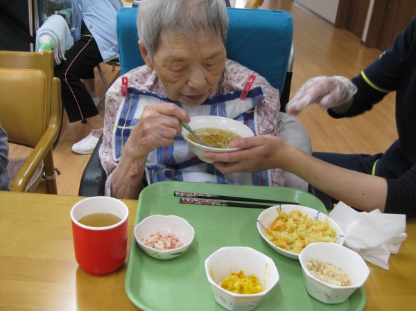 かき揚げうどん・いなりずし・南瓜サラダです。