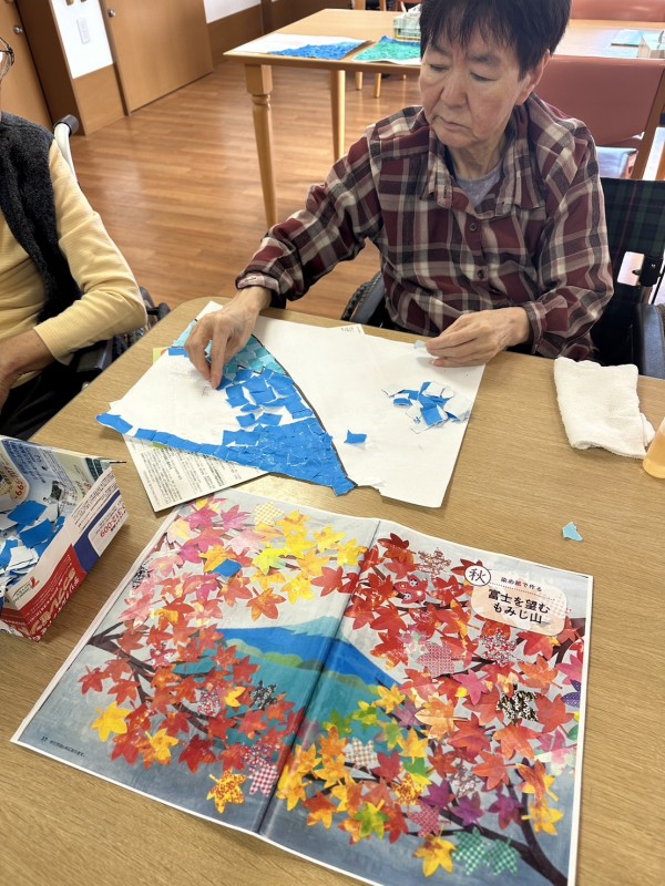 『富士山部分のちぎり絵』に一生懸命取り組まれていました☆