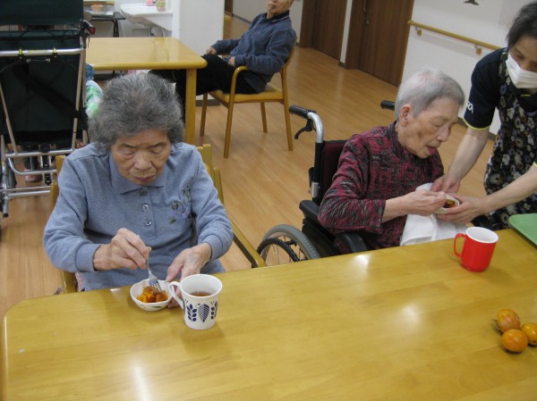 こんにちは! グループホームみんなの家・あきがせの介護ブログです! よろしくお願いいたします。 オーナー様から『かき』の差し入れがありました。召し上がられた様子をお知らせいたします!!