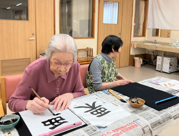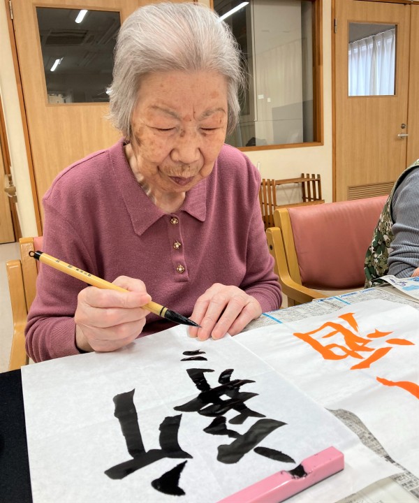 では本日のブログは皆様が毎月楽しみにされている書道クラブです“φ(`・ω´・)