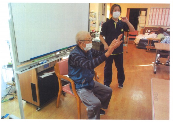 前に出た人に、ゼスチャーで正解を当ててもらうゲームです。お題は色々、皆様に楽しんでもらえるように司会が盛り上げます。ヒントを考えたり、体を動かしたり、そのヒントから正解を導き出そうと考える。双方が楽しいゲームです。今回も非常に盛り上がっていましたが職員も楽しすぎて写真を撮るのを忘れてしまったようで・・・。開始直後の写真しかないのがとても残念です(笑)