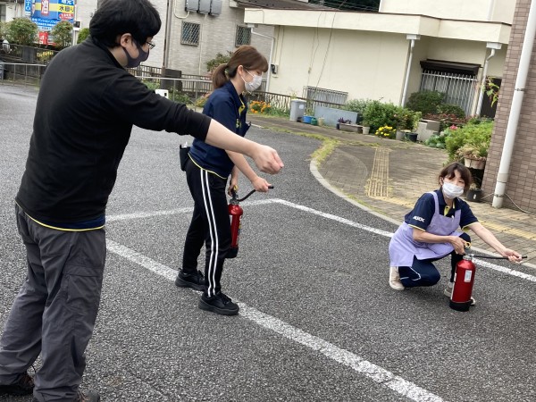 いざという時慌ててしまい、どこに連絡したらよいのか?どのように避難したら良いのか?どこに消火器があるのか?どのように消火器を使うのか?スタッフ間で再確認です。間違えて119番を110番に電話してしまう方も居るとか・・・(^^;)