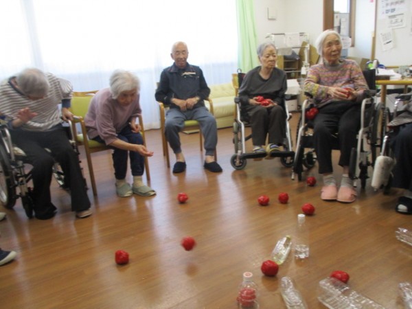みんなで丸なって一斉にボールを投げてボーリング遊びをしました!!