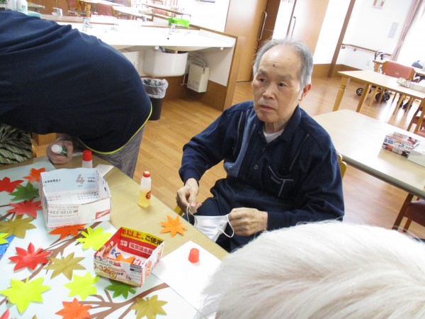 色とりどりのもみじも職員といっしょにたくさん作って下さいました。
