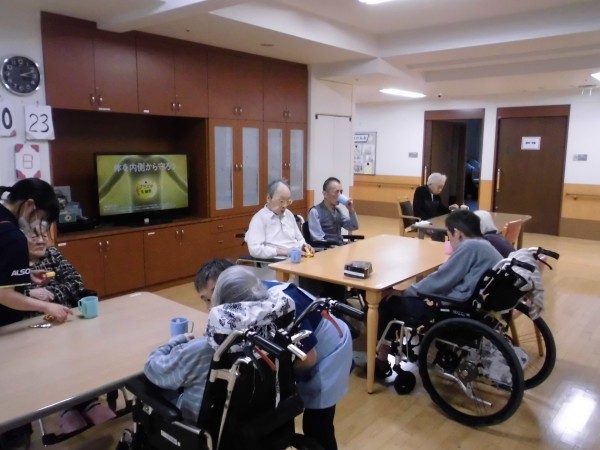 この他にも、おやつの前には体操や定期的にレクイベントなどを行い、コロナ禍では