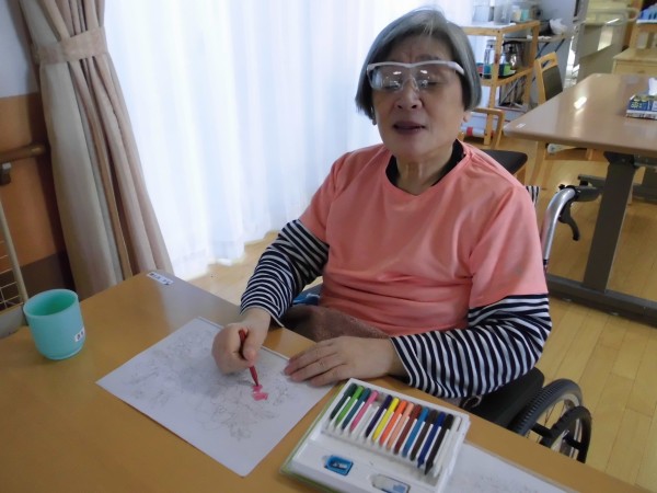ゲームや塗り絵などの制作物を皆さまとても熱心に取り組まれているのが印象的でした。