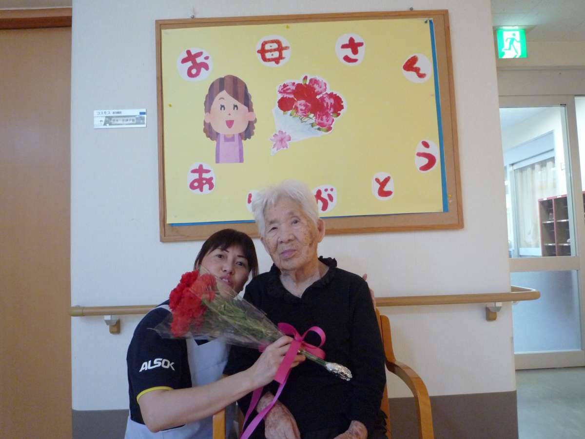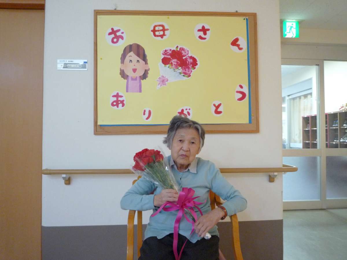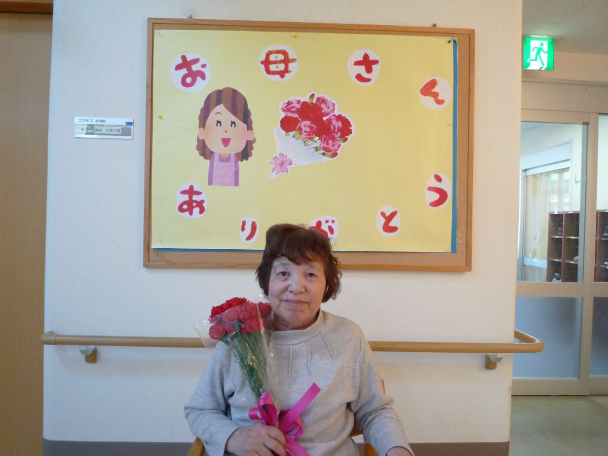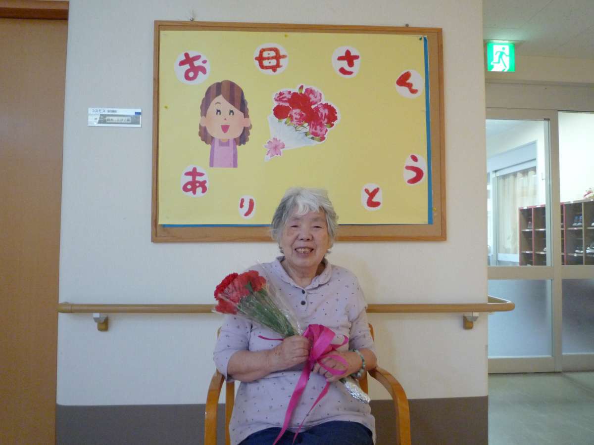 母の日で女性利用者様にカーネーションを渡し記念撮影を致しました。