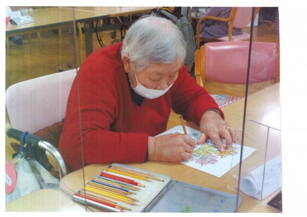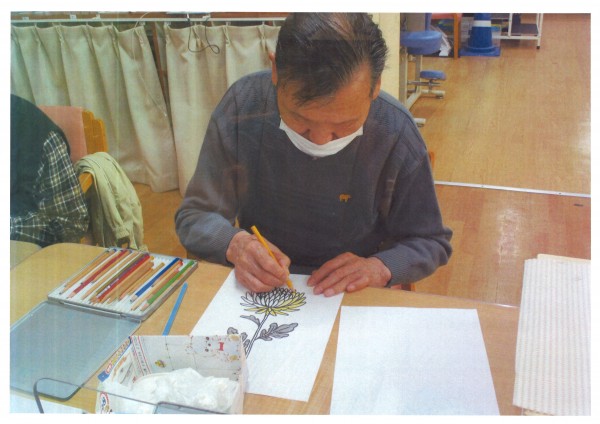 本日のレクリエーションは【秋のお花塗り絵と飾り作り】です。