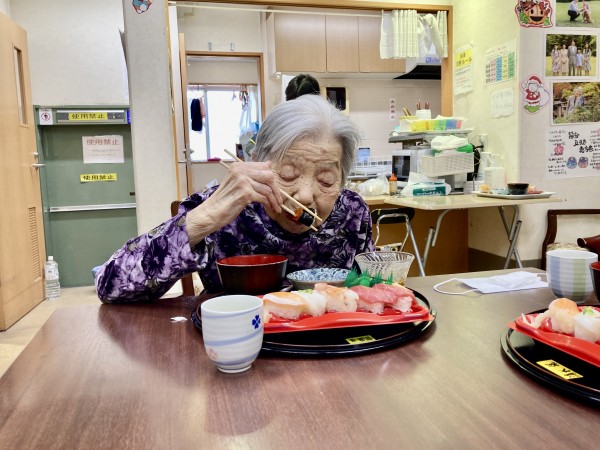 昼食のご様子です ~握り寿司・デザート~