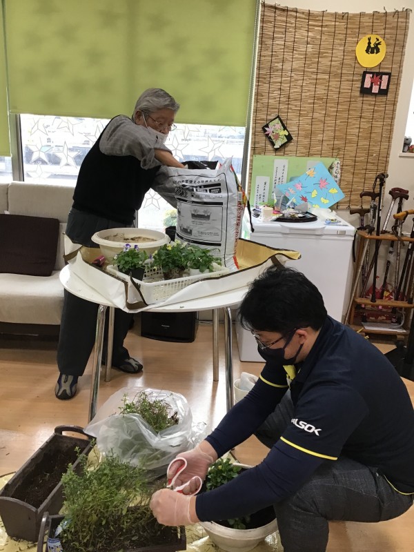 前に植えていたものを除いて土をプラスしながら植え替えを行いました。
