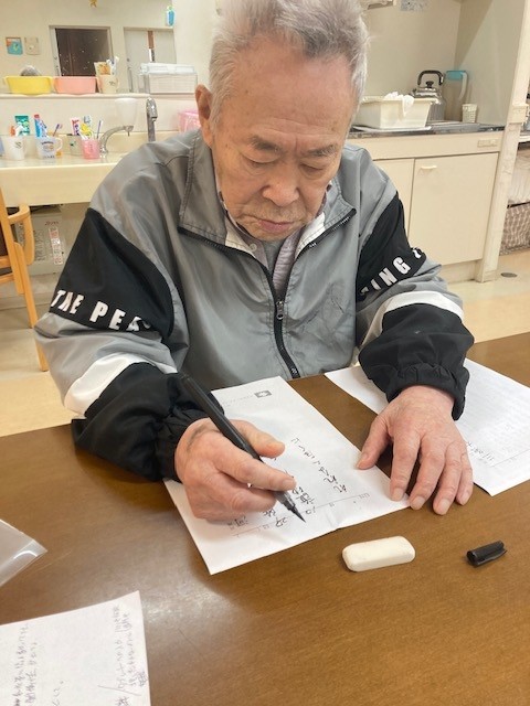 ご入居前はデイサービスで他のご利用者様に書き方を教えていたそうですよ!