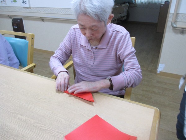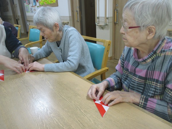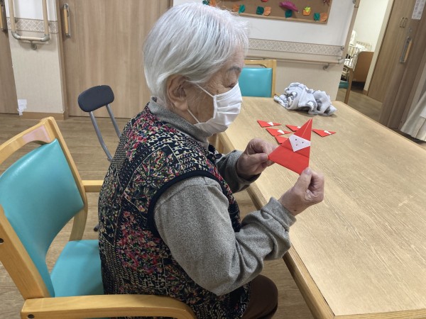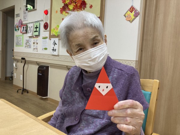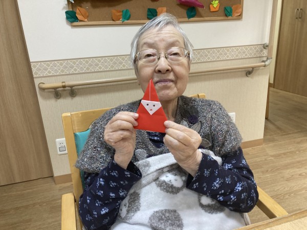 ご入居者様に折り紙でサンタを作っていただきました。