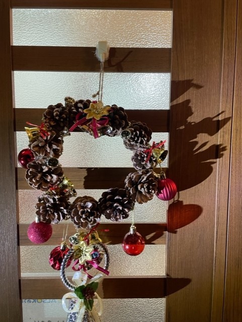 ご利用者様がリースを作ってきてくださいました!(^^)!とってもクリスマスらしくなりました。