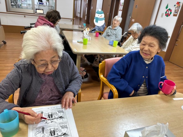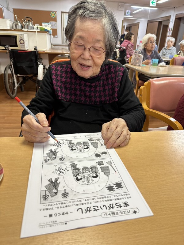 ◉新作の『間違い探し』に、『これ毎月楽しみにしてるのよ』『あと2つ、どれだと思う〜?頭を使うよね〜』と、同席の方々と談笑されながら取り組まれる方。