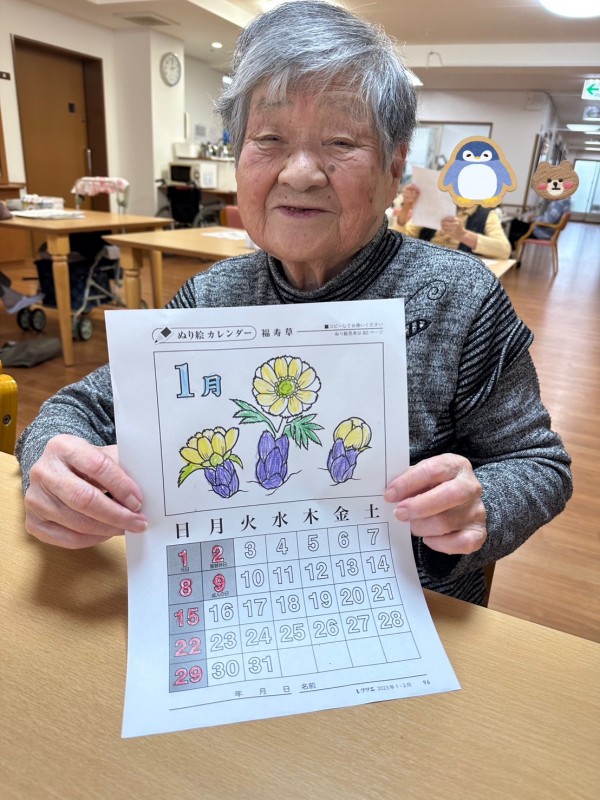 ◉『福寿草って可愛いよね♪』と、季節の塗り絵に取り組まれるお花大好きなK様♡