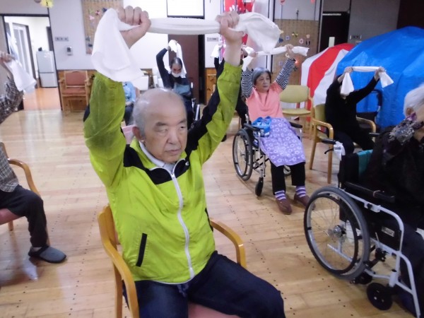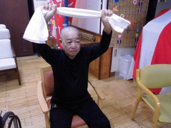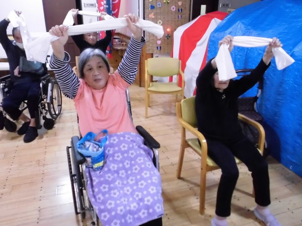 タオルを使用し、転びにくい体作りを目指します。