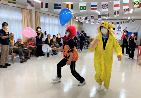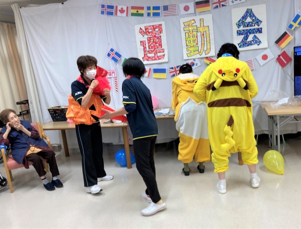 ただのリレーではつまらないので、引いた番号の仮装をして走って下さい☆