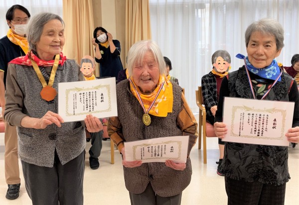 ホーム長から賞状とメダルの授与です☆フロアの代表者は前に来てください♪