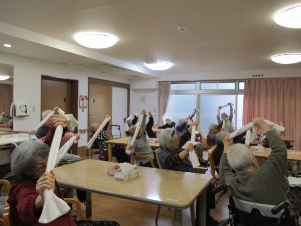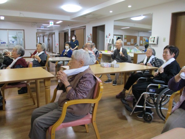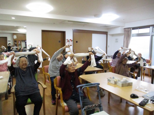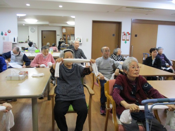 11月28日、2階で内野本郷の入居者様が集まり、リモートでトレーニングを行いました\(^o^)/