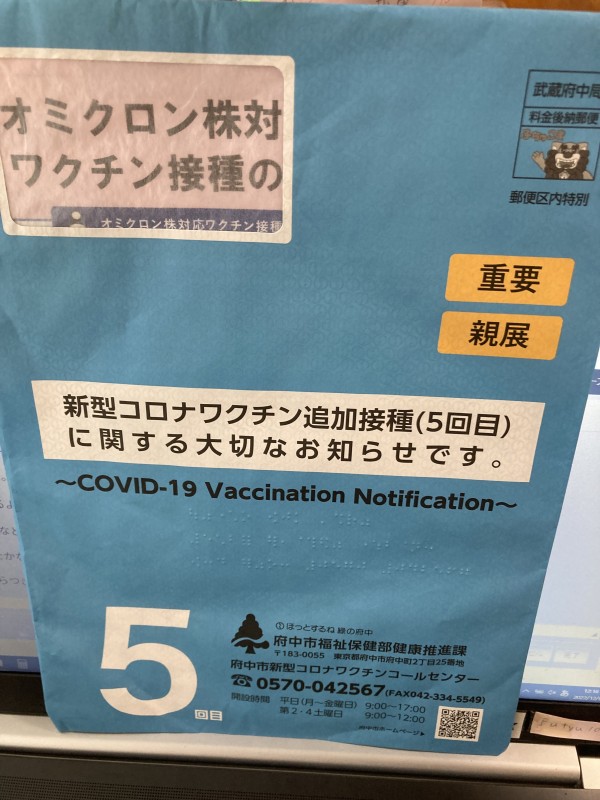 コロナワクチン5回目接種終了しました