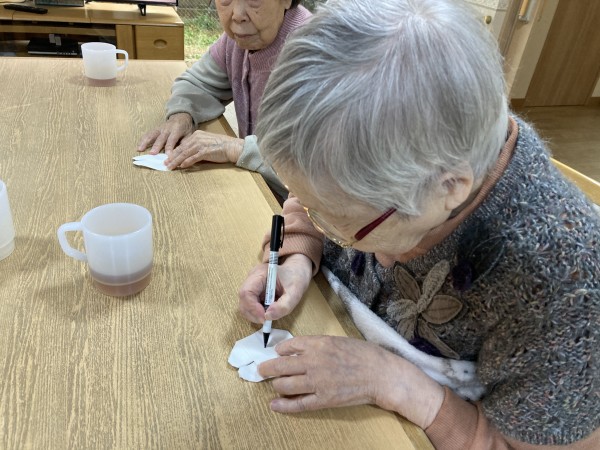 ご入居者様と一緒に折り紙を行いました。