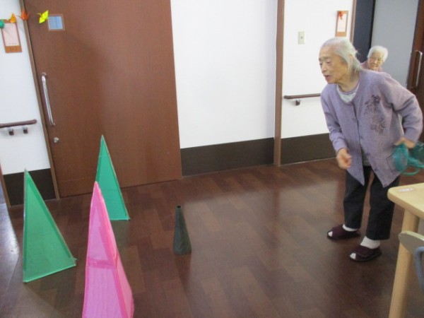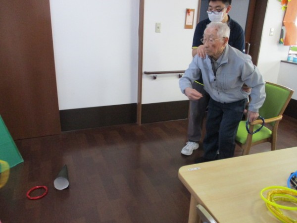 今日はE様が『是非やってみたい!!』と前からおっしゃっていた輪投げを皆さんでやしました(^^)