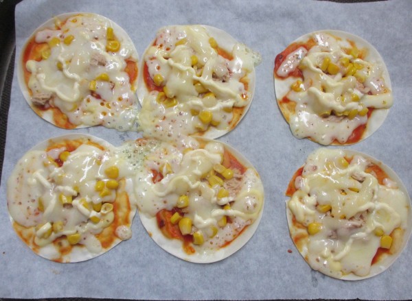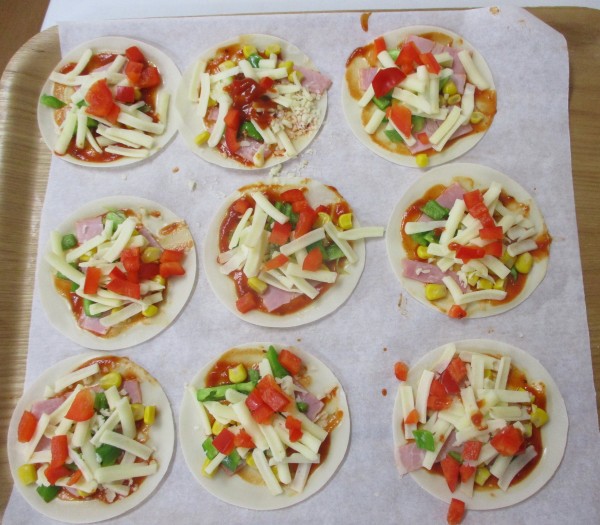 今日のおやつは、ギョーザの皮でミニピザにしてみました!