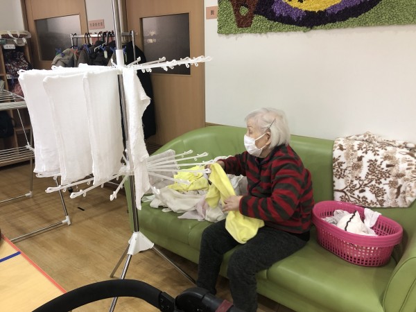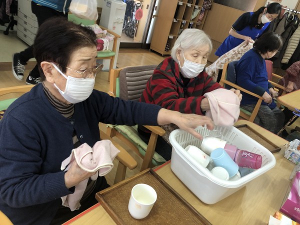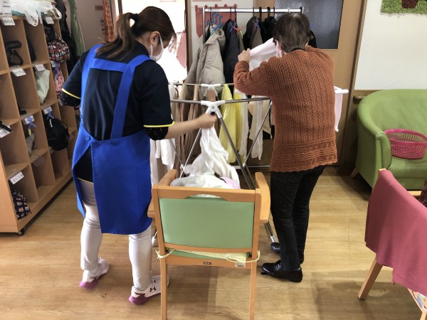 午後は食器洗い、食器拭き、口腔ケア、お片付け、洗濯干しを行ます。