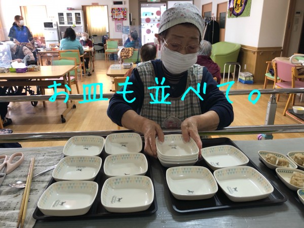 そしてお昼前には調理の盛り付け、コップ洗いなどしていただいております。