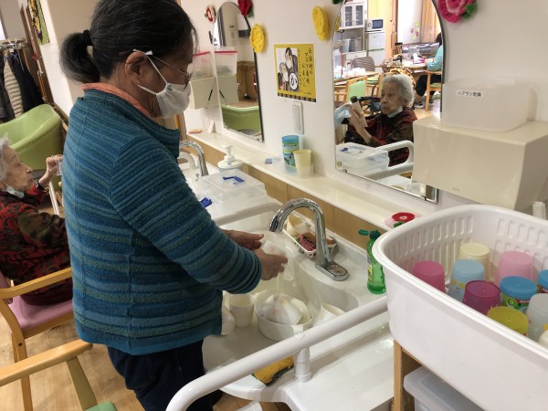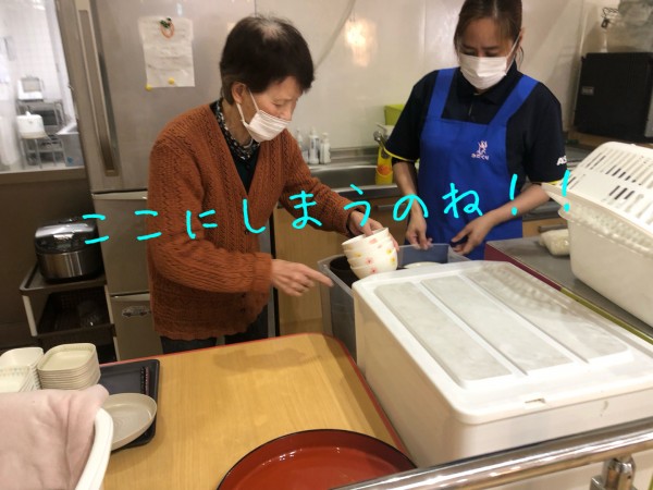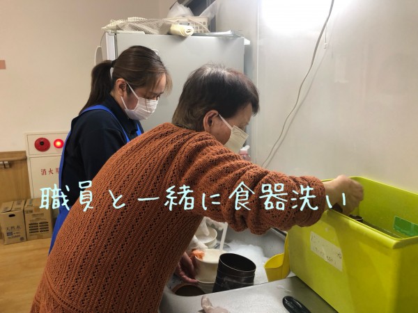 職員と一緒に食器を洗って下さったり食器をゆすいで下さったりします。