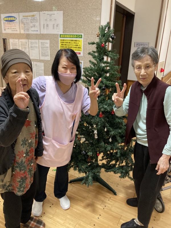 先日、本館の入居者様にクリスマスツリーの飾り付けをしていただきました。