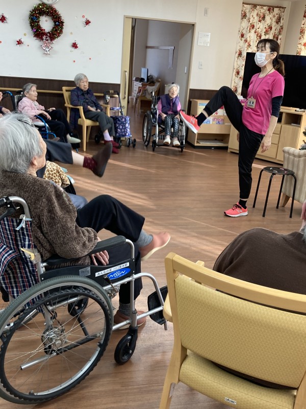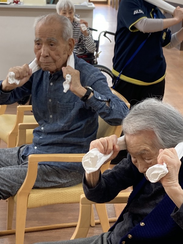 今回は二日連続で先生の指導の下、タオル体操といきいきリズム体操を行いました。