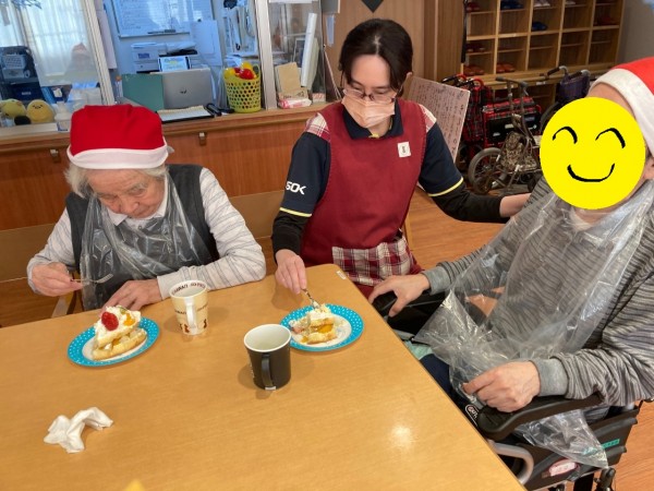 皆様で、クリスマスの雰囲気を楽しみながら、ケーキ美味しく召し上がりました。