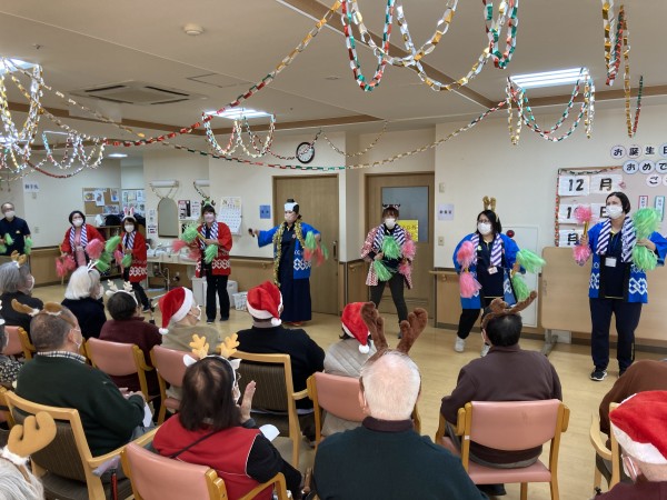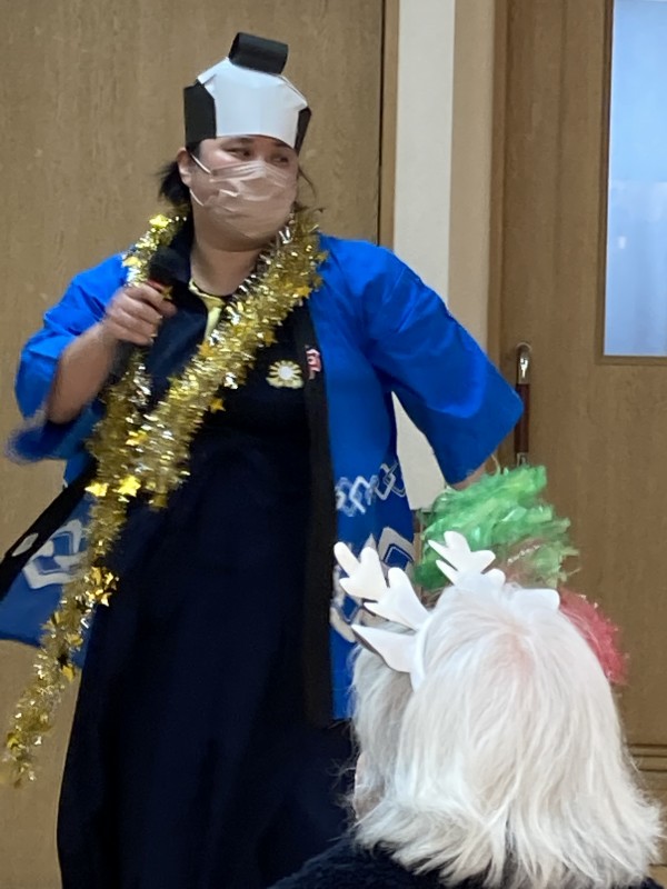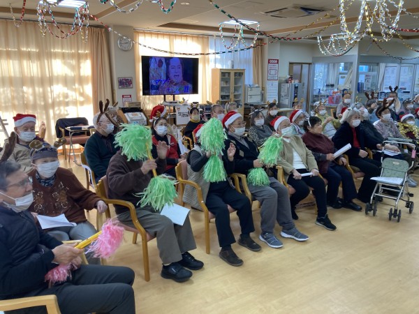 利用者様にもボンボンを持ってもらい一緒に踊りました