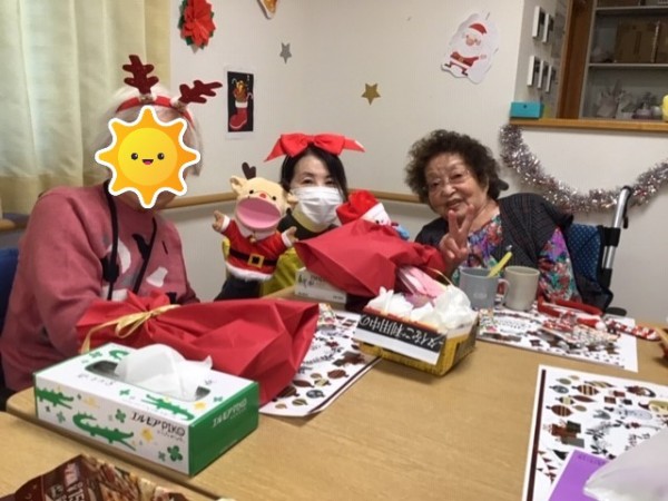 まず、ご利用者様みんなでコスプレ! 定番の赤い帽子やトナカイのカチューシャを!皆さんよくお似合いでした。