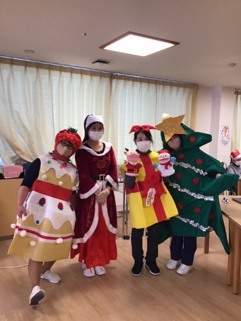 施設長、看護師さんのコスプレも可愛い!プレゼントにショートケーキ、クリスマスツリーにマライアキャリー!?