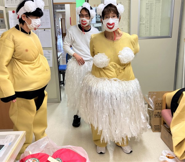 ご利用者様を会場へ案内している中、裏ではなにやらスタッフによる催し物の準備が進められていました…( *´艸`)