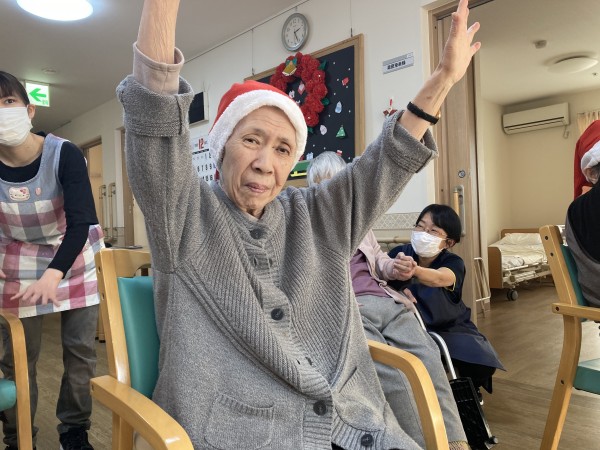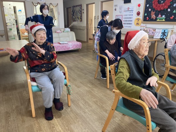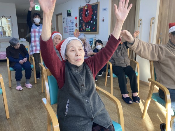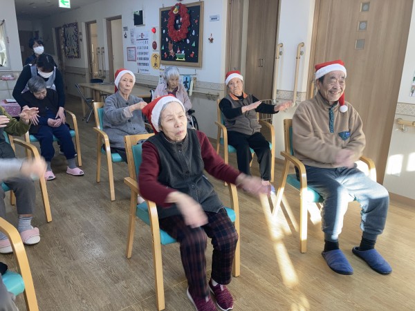 クリスマスの音楽に合わせて体を動かされ、いつもお元気な皆さまの様子です。