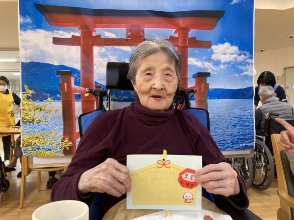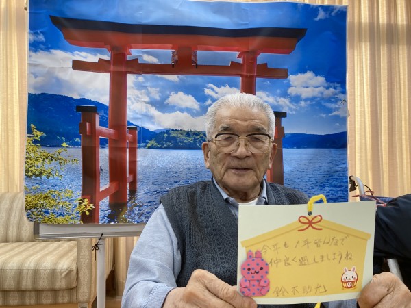 最初は、「何て書こうかな?」「頭に浮かんでるんだけど、言葉にできない」と悩まれている姿も見受けられましたが、職員のアドバイスでペンが進み、みなさん独特の絵馬が完成しました。