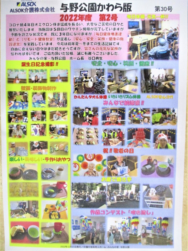 お待ちかねの“みんなの家・与野公園 かわら版第30号”が出来上がりました。