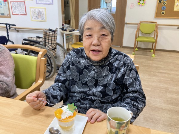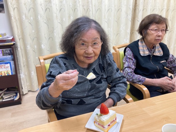 『ご入居者様の皆様でケーキを楽しみました』