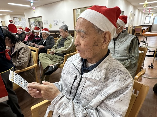 クリスマスソングの合唱、ビンゴ大会、ケーキとココアで