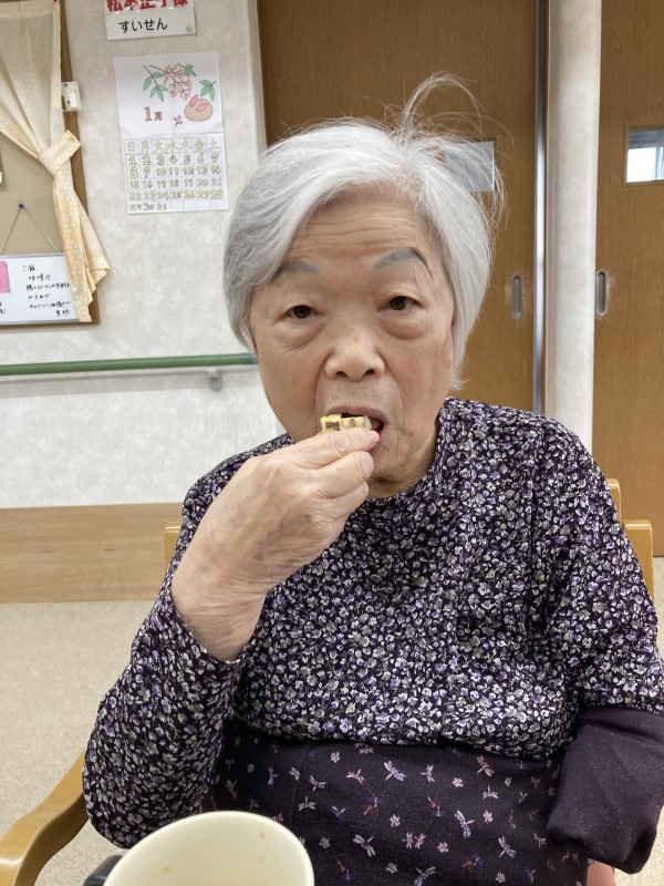 「このさつまいもは何になるの?」「なんだか美味しそうなのが出来そうね~」「私さつまいも大好きだから食べれて嬉しい」と楽しくお話をされながら作っていきます。