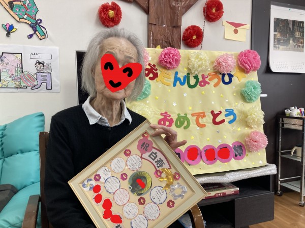 新年明けましておめでとうございます。あっという間に1月も中旬になってしまいました。2023年も利用者様・ご家族様・スタッフ、いやいや、世界みんなが幸せに過ごせるといいですね。みんなの家・殿山北糀谷では元旦からおめでたいことがありました。N様の百寿のお誕生日なのです!!本当に頼りになるN様。スッタフも他利用者様も尊敬の念を抱いております。