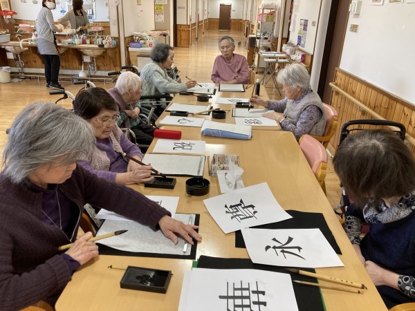気分を新たに入居者様と『書初め』を行いました。