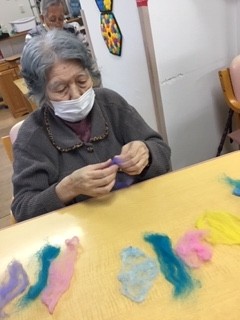 フエルトが縮んで、あっという間に石鹼に密着するので簡単です。色とりどりのカラフルな出来上がり~~~!(^^)!。