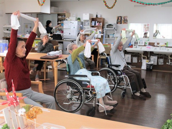 毎月開催のタオルを使った体操で、毎回内容が違うので新鮮な思いで参加できます。