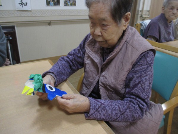 節分にあわせて鬼の顔を作り、飾りを作っています。