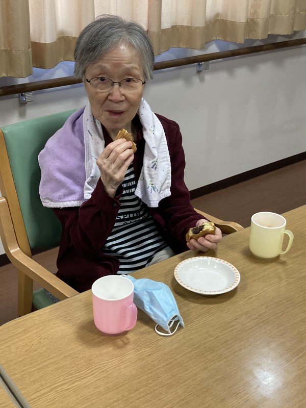 おやつは誕生日を迎えられた入居者様のリクエストにより、あんこがたくさん入った鯛焼きです