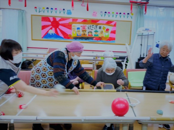 慣れてくるとお手玉1個から2個投げて行う方もいらっしゃいました。数で攻めてますねー?